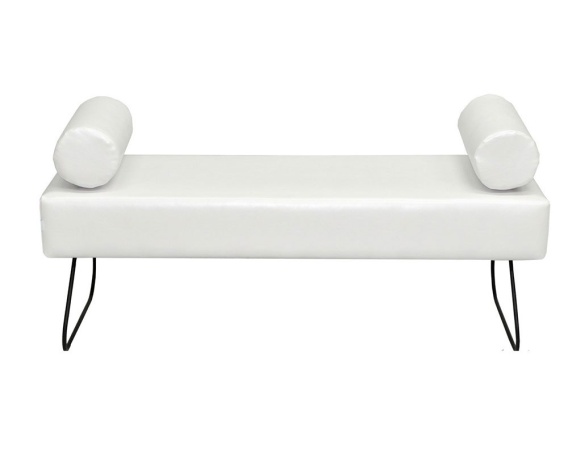 Prosta w formie ławka Lever z wałkami z włoskiej ekoskóry na metalowych płozach.