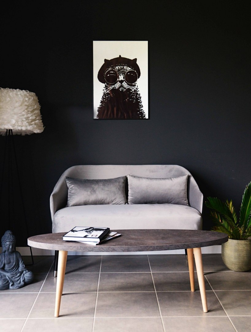 Minimalistyczny stolik kawowy KANU z kolekcji "beton". Blat stolika imituje strukturę betonu. Bardzo stabilny! Dostępny w dwóch wariantach kolorystycznych.