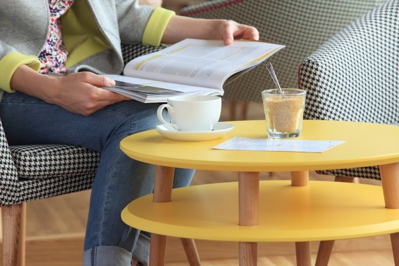 Rodzina stolików UFO jest nowoczesna, ale przede wszystkim funkcjonalna. Możesz odłożyć na nie napoje i przekąski, a także przechowywać drobne przedmioty na niższym blacie - chusteczki, laptopy, magazyny etc.