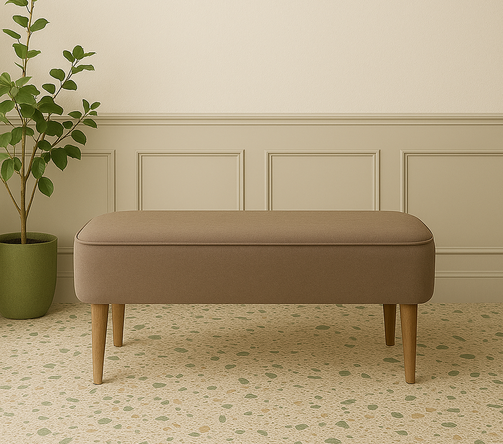 Przedpokój: ławka z pojemnikiem w odcieniu piaskowego beżu to styl i funkcjonalność.