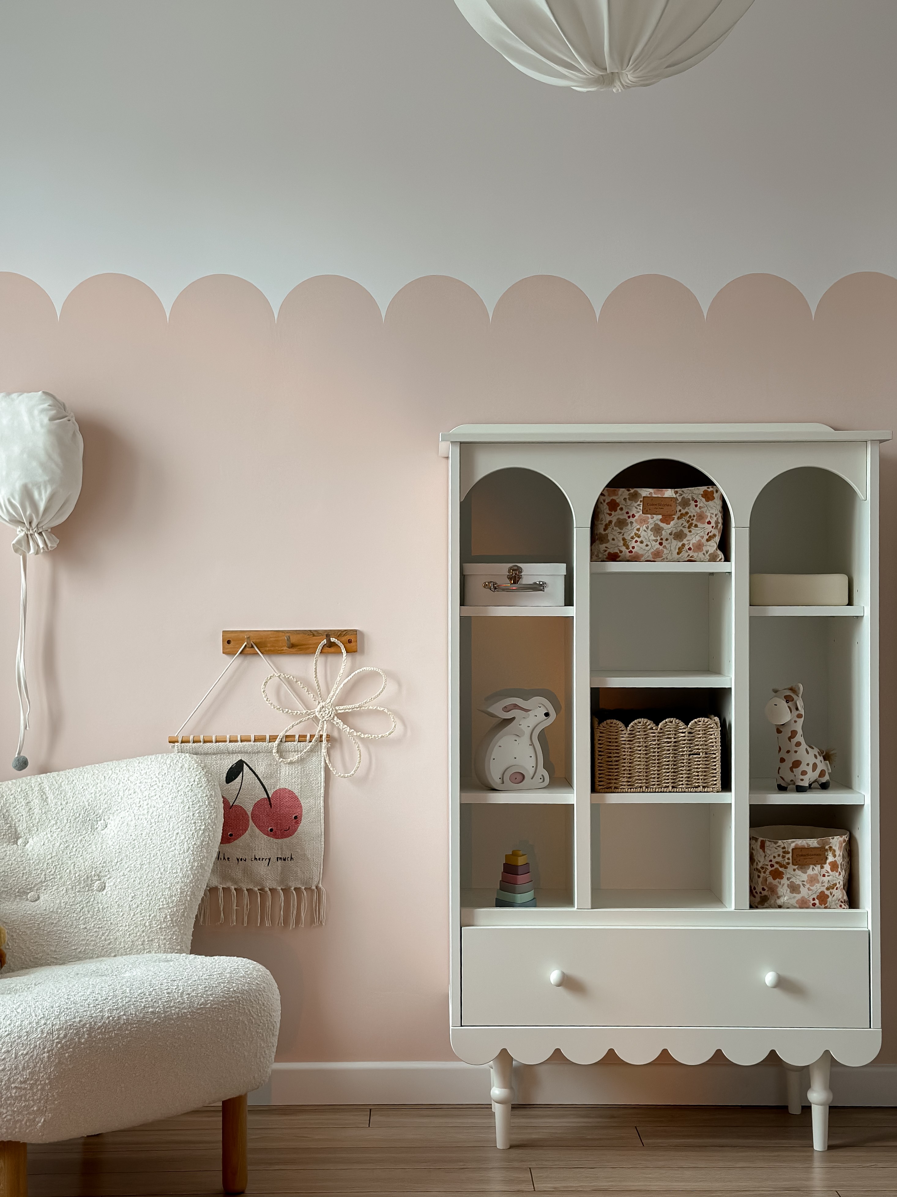 To najważniejszy mebel. Warto postawić na solidne łóżeczko z możliwością regulacji wysokości materaca. Model z kolekcji Babushka zachwyca ozdobną falbanką i dostępny jest w trzech kolorach: oliwka, różowy, biały – idealnych do dziecięcych aranżacji.